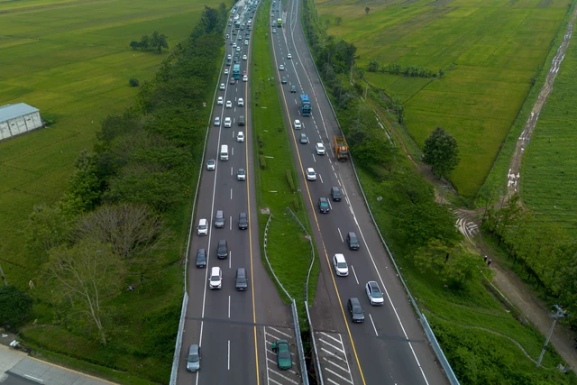 Foto udara sejumlah kendaraan melintas di ruas tol Cikopo-Palimanan (Cipali), Majalengka, Jawa Barat, Kamis (19/3/2026). Foto: Dedi Suwidiantoro/ANTARA FOTOzoom-in-white Bekasi, Arena Berita – O...