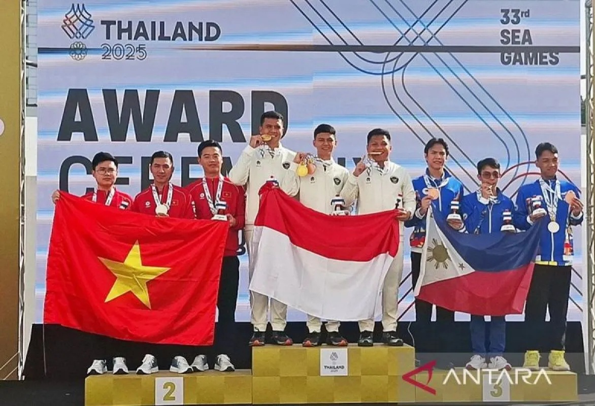 Kontingen Indonesia menambah medali emas dari cabang menembak nomor air pistol 10 meter beregu putra SEA Games 2025, sementara Sultanul Aulia Ma’ruf mendapat perunggu di nomor perorangan dalam laga yang digelar di gedung Asosiasi Olahraga Menembak Thailand, Bangkok, Minggu.