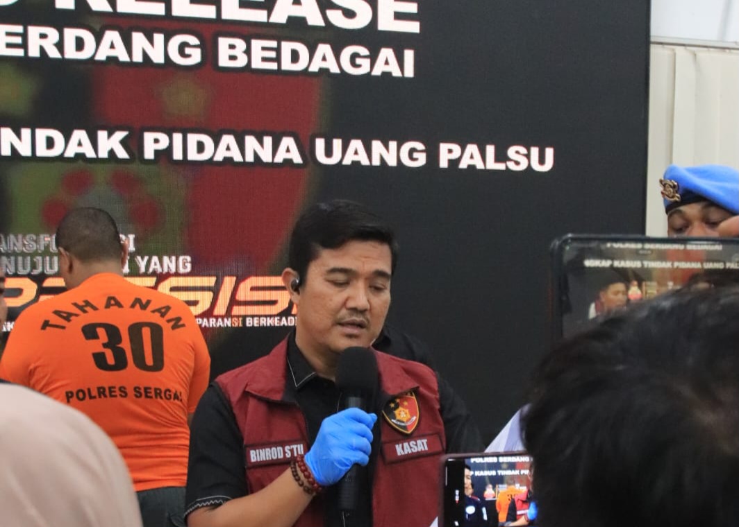Satuan Reskrim Polres Serdang Bedagai (Sergai) berhasil mengungkap kasus peredaran uang palsu (upal) dengan mengamankan seorang tersangka berinisial RT (27) warga Desa Pon Kecamatan Sei Bamban berikut barang bukti sebanyak 106 lembar uang palsu saat ditangkap di sekitar kediamannya, Minggu (24/11/2025).