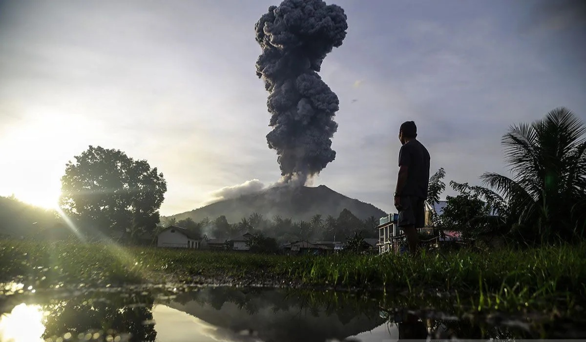 Arsip foto – Seorang warga melihat erupsi dari kawah Gunung Ibu terlihat dari Desa Duono, Kabupaten Halmahera Barat, Maluku Utara, Rabu (15/1/2024) ANTARA FOTO/Andri Saputra/foc/pri.
