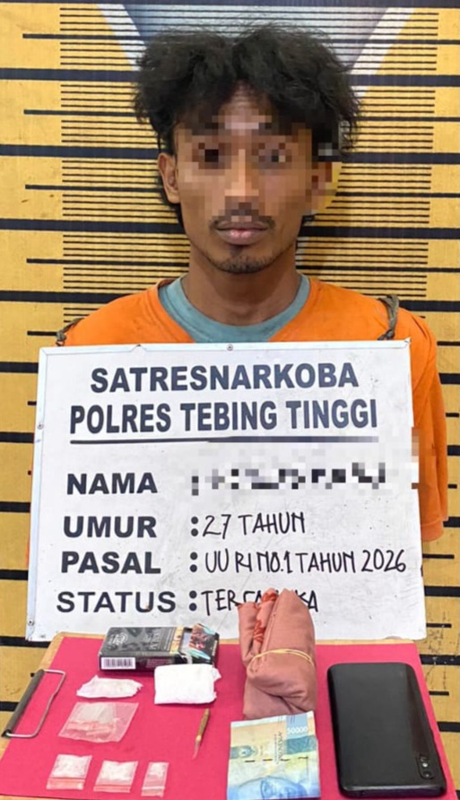 Gerak cepat personel Sat Resnarkoba Polres Tebing Tinggi kembali membuahkan hasil. Seorang pria berinisial MDM (27) diamankan dalam pengungkapan kasus peredaran narkotika jenis sabu di Dusun V Desa Binjai Kecamatan Tebing Syahbandar, Kabupaten Serdang Bedagai, Minggu sore (22/2/2026).