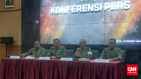 Komandan Puspom TNI mengungkap empat prajurit TNI sebagai tersangka penyiraman air keras terhadap aktivis KontraS Andrie Yunus. Penyelidikan sedang berlangsung. (Foto: CNN Indonesia/ Maulida Balqis)