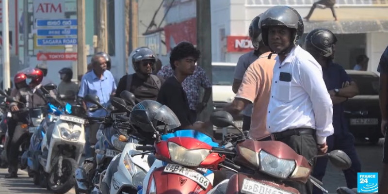 Antrean panjang warga Sri Lanka di SPBU (Tangkapan layar RMOL dari siaran YouTube France24)