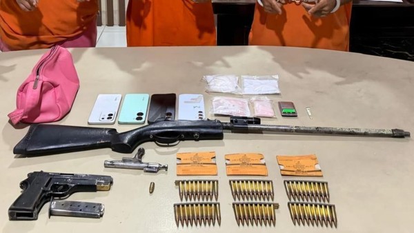 Selain narkotika, satu unit senjata api laras panjang rakitan dan laras pendek rakitan jenis FN disita polisi. Termasuk 58 butir amunisi kaliber 5,56×45 mm.