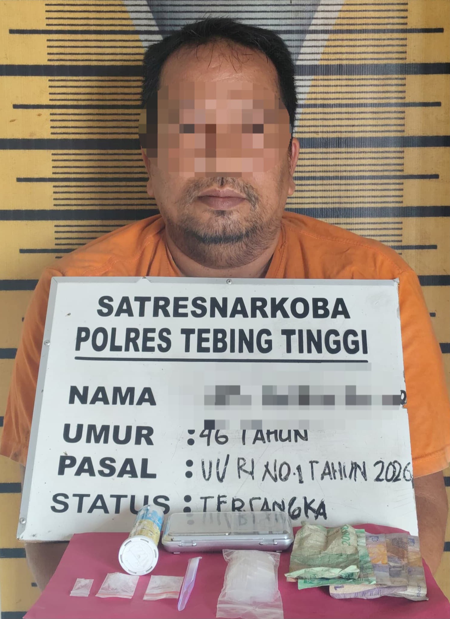 “Pelaku diketahui berinisial ASC (46), yang diamankan dari dalam sebuah rumah setelah polisi menerima laporan masyarakat terkait aktivitas mencurigakan yang diduga sebagai transaksi narkotika jenis sabu di lokasi tersebut”, ungkap Kasi Humas Polres Tebing Tinggi AKP Mulyono, Selasa (21/4).