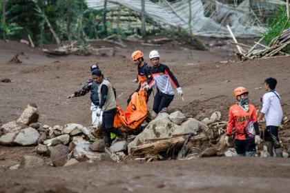 Tim SAR gabungan mengevakuasi jenazah korban bencana tanah longsor di Desa Pasirlangu, Cisarua, Kabupaten Bandung Barat, Jawa Barat, Minggu (25/1/2026). Foto: Abdan Syakura/ANTARA FOTO Bandung Barat, ...
