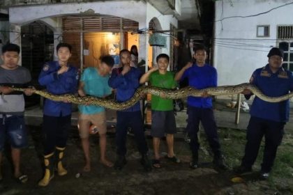 Foto: Seekor ular piton berukuran 7 meter ditemukan bersembunyi di plafon rumah warga di Kendari. (dok. istimewa) Kendari, Arena Berita – Seekor ular piton berukuran 7 meter ditemukan bers...
