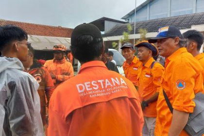 Petugas tengah bersiap untuk melakukan evakuasi di Desa Pasirlangu, Cisarua, Kabupaten Bandung Barat. Bandung Barat, Arena Berita – Bencana tanah longsor menerjang Kampung Pasir Kuning, RW 10 da...